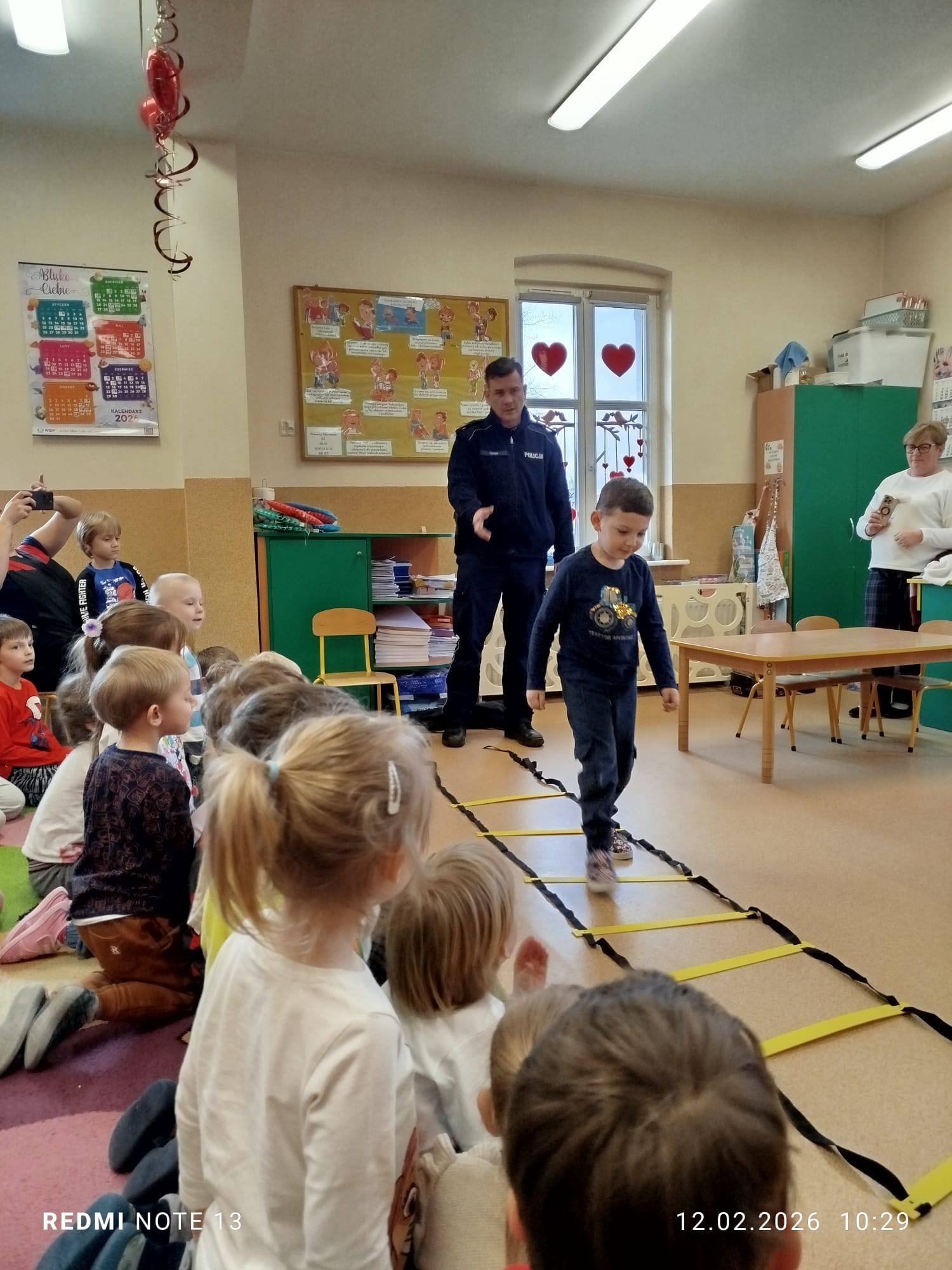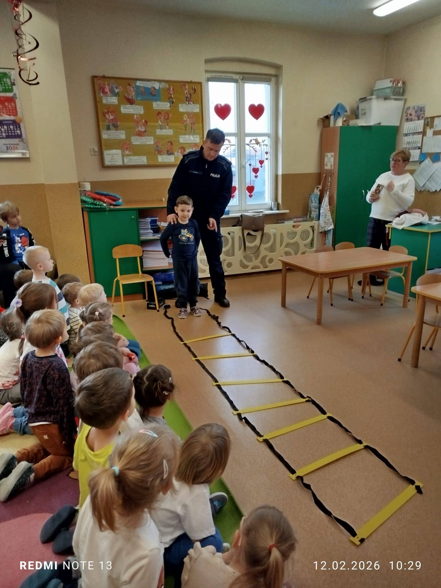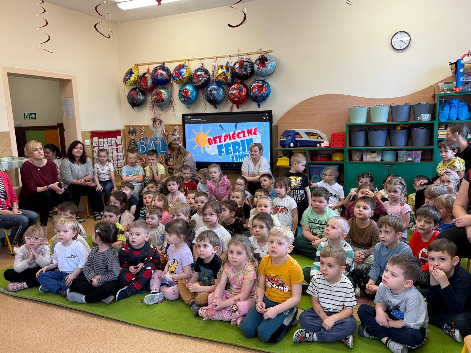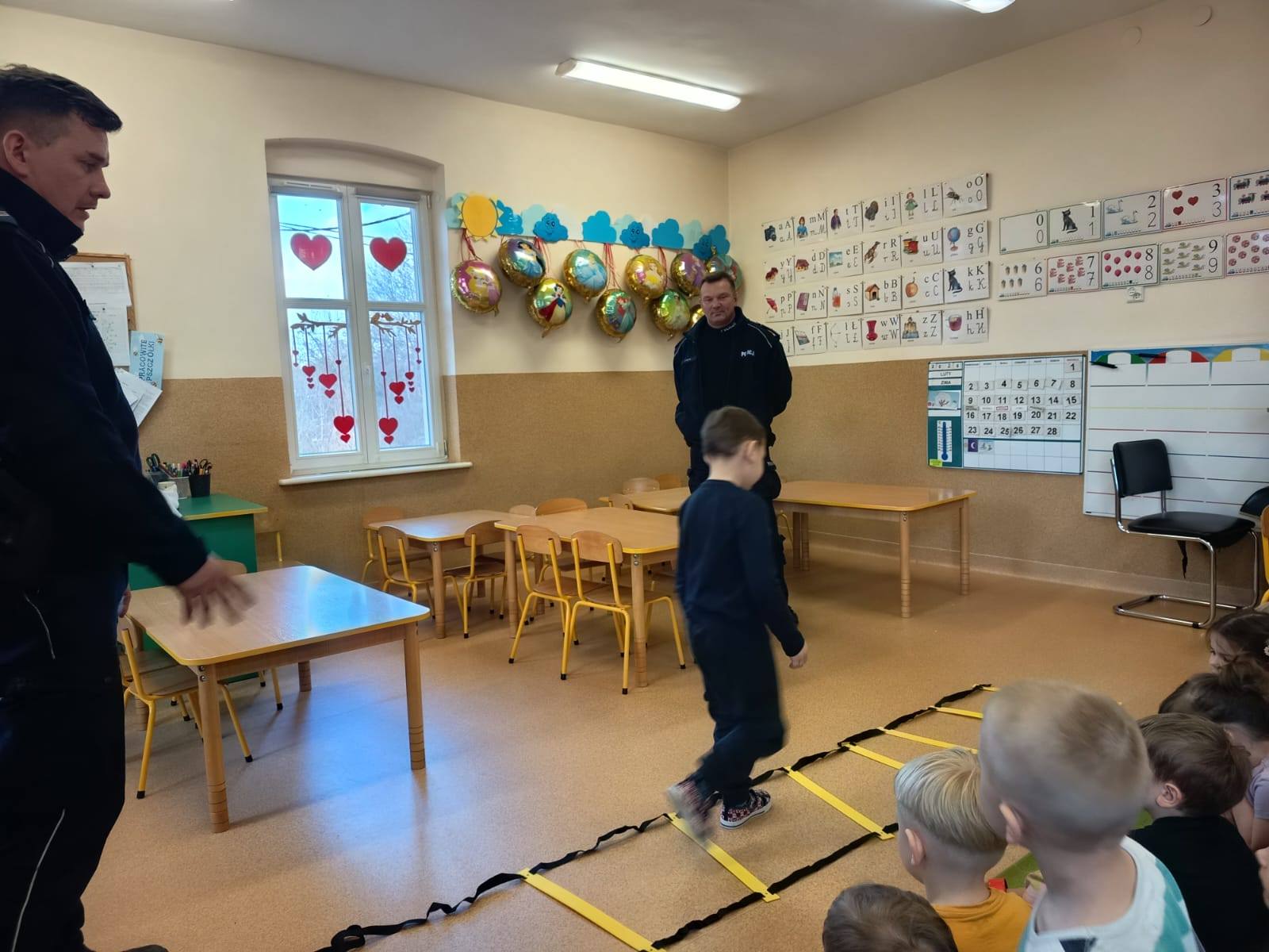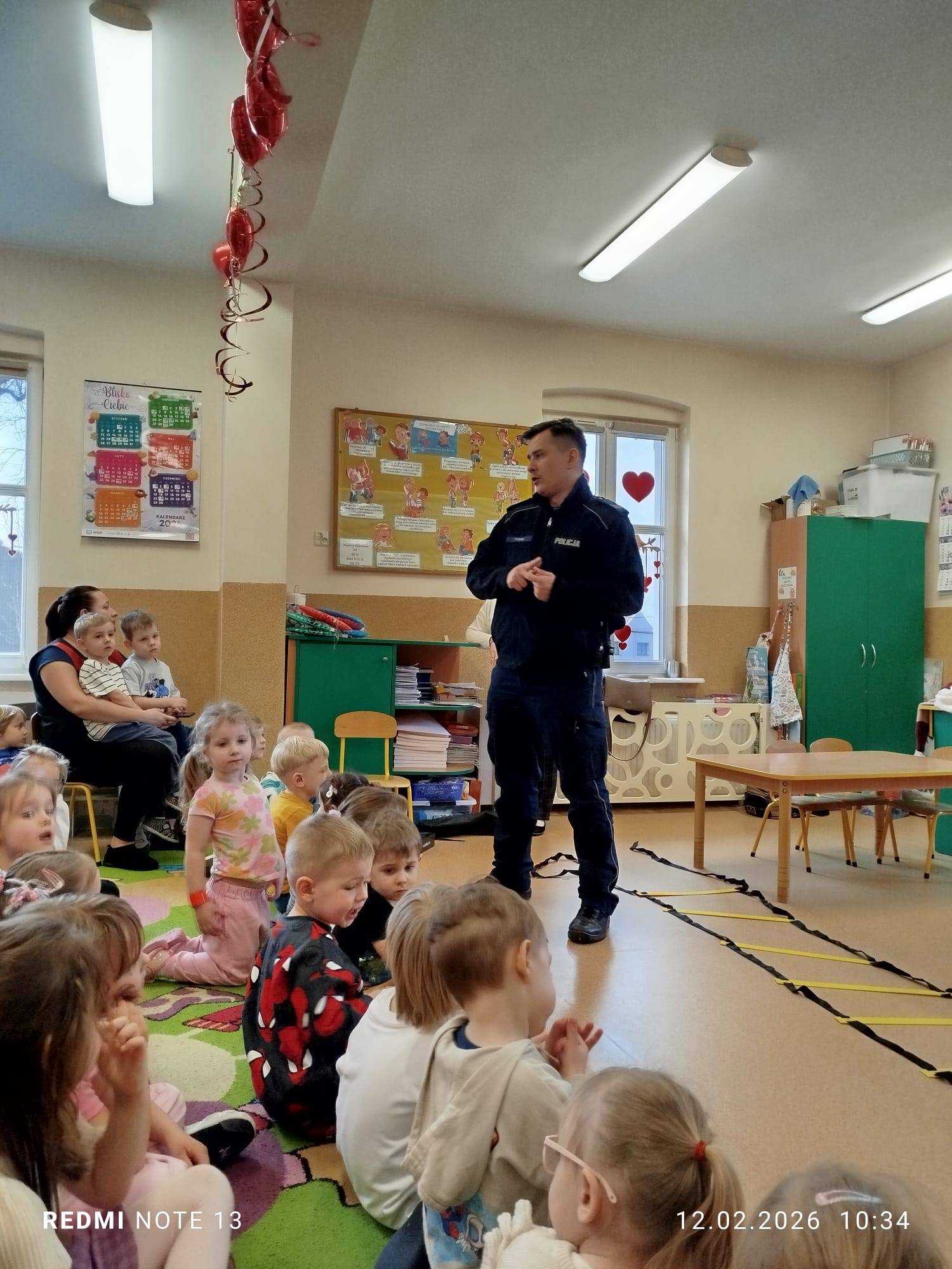 Celem wizyty było przypomnienie dzieciom najważniejszych zasad bezpieczeństwa podczas zbliżających się ferii zimowych. Przedszkolaki z dużym zainteresowaniem słuchały wskazówek dotyczących bezpiecznej zabawy na śniegu i lodzie, poruszania się po drodze, kontaktów z nieznajomymi oraz właściwego zachowania w sytuacjach zagrożenia.