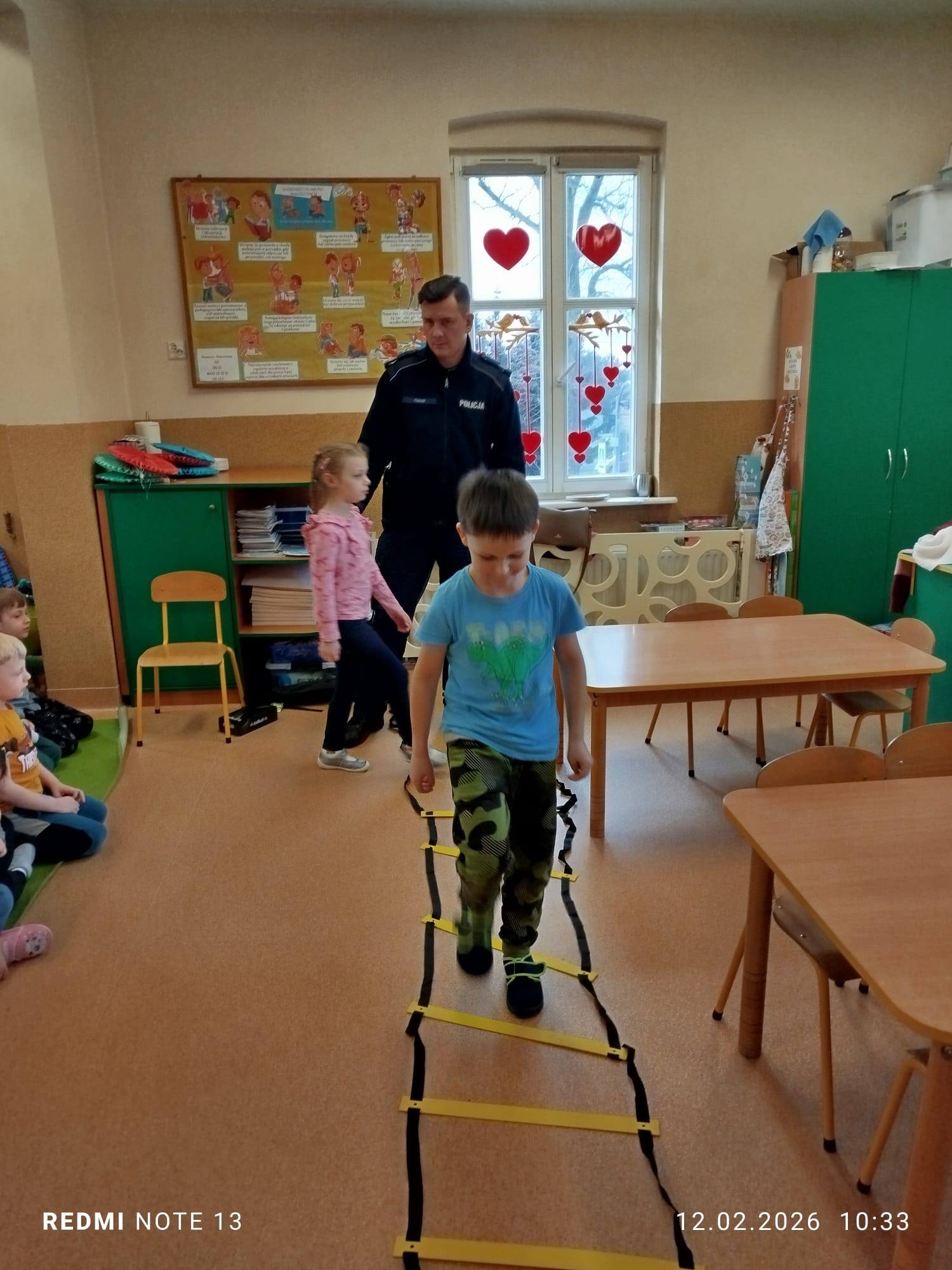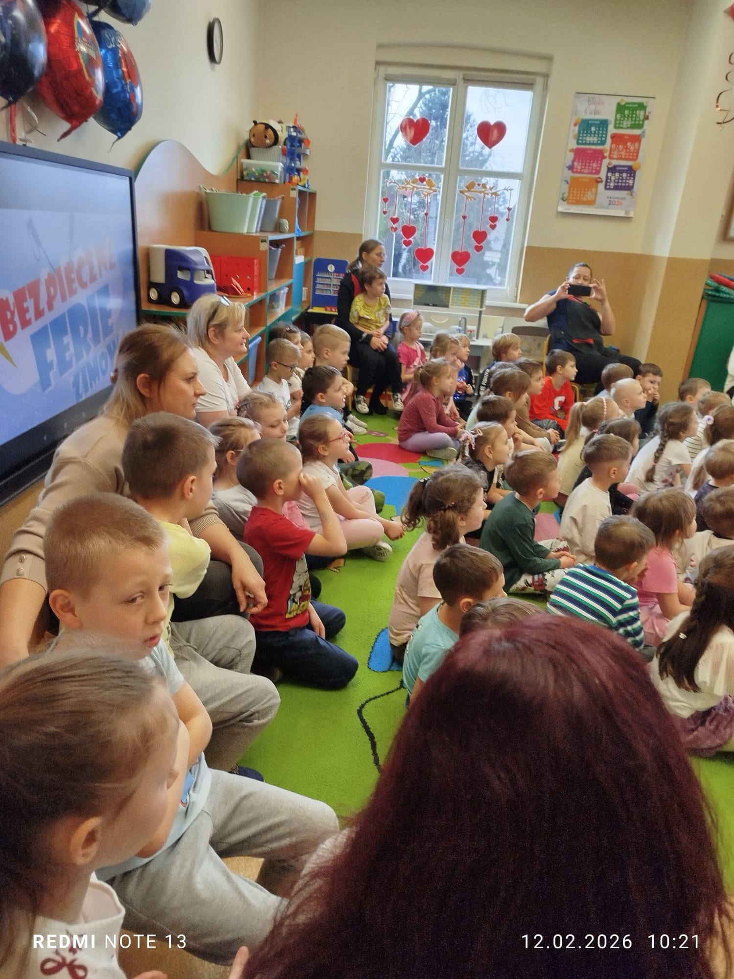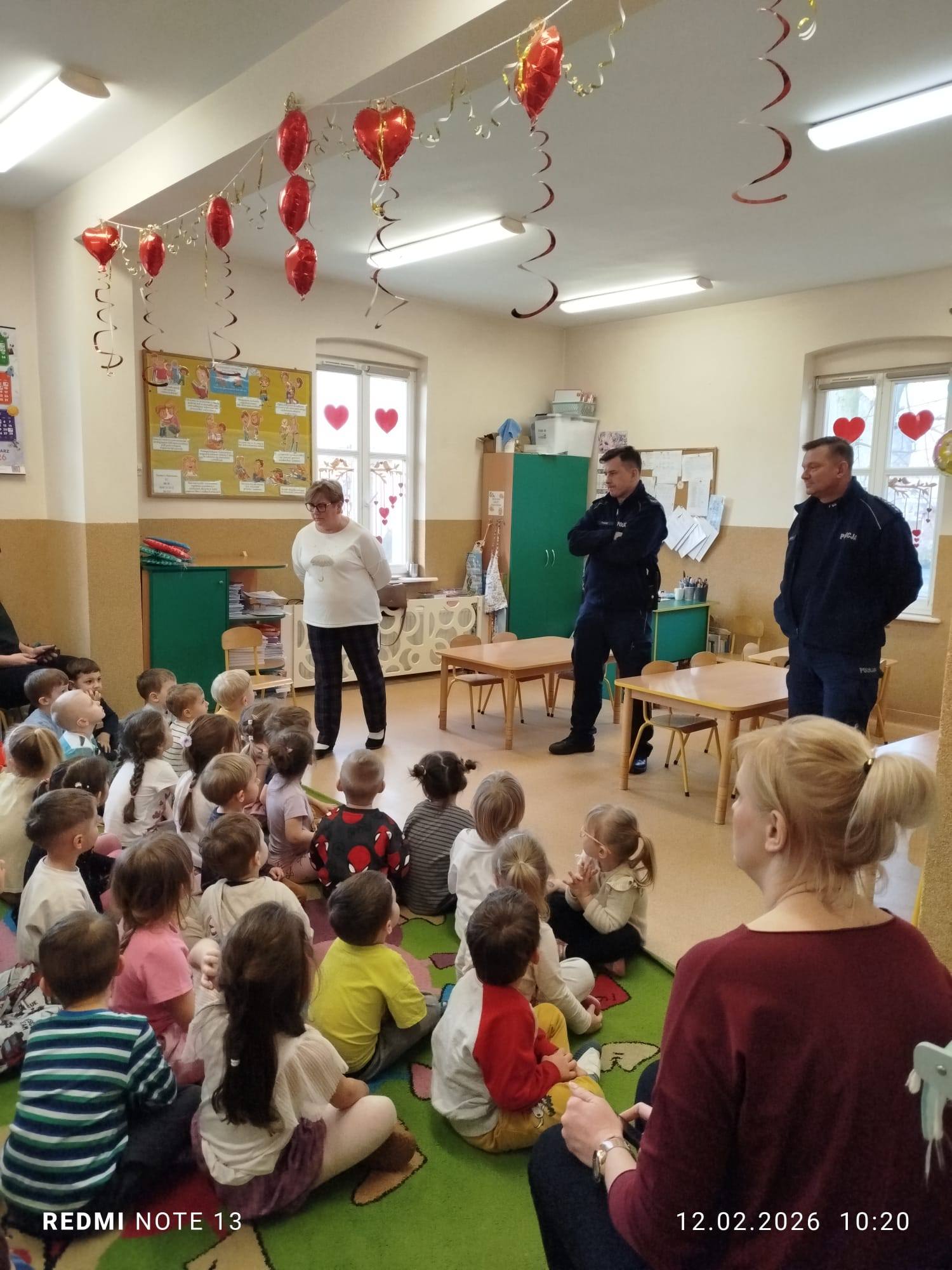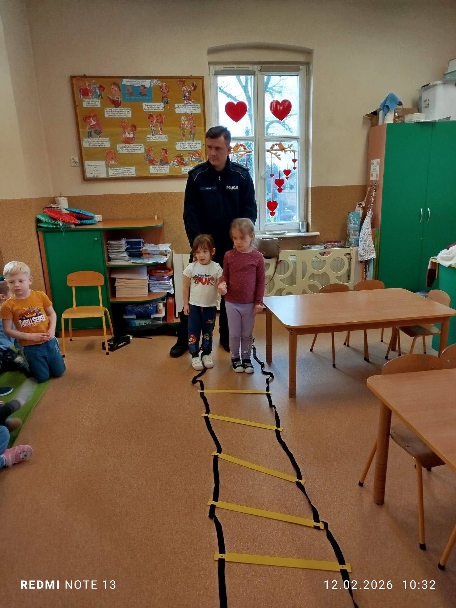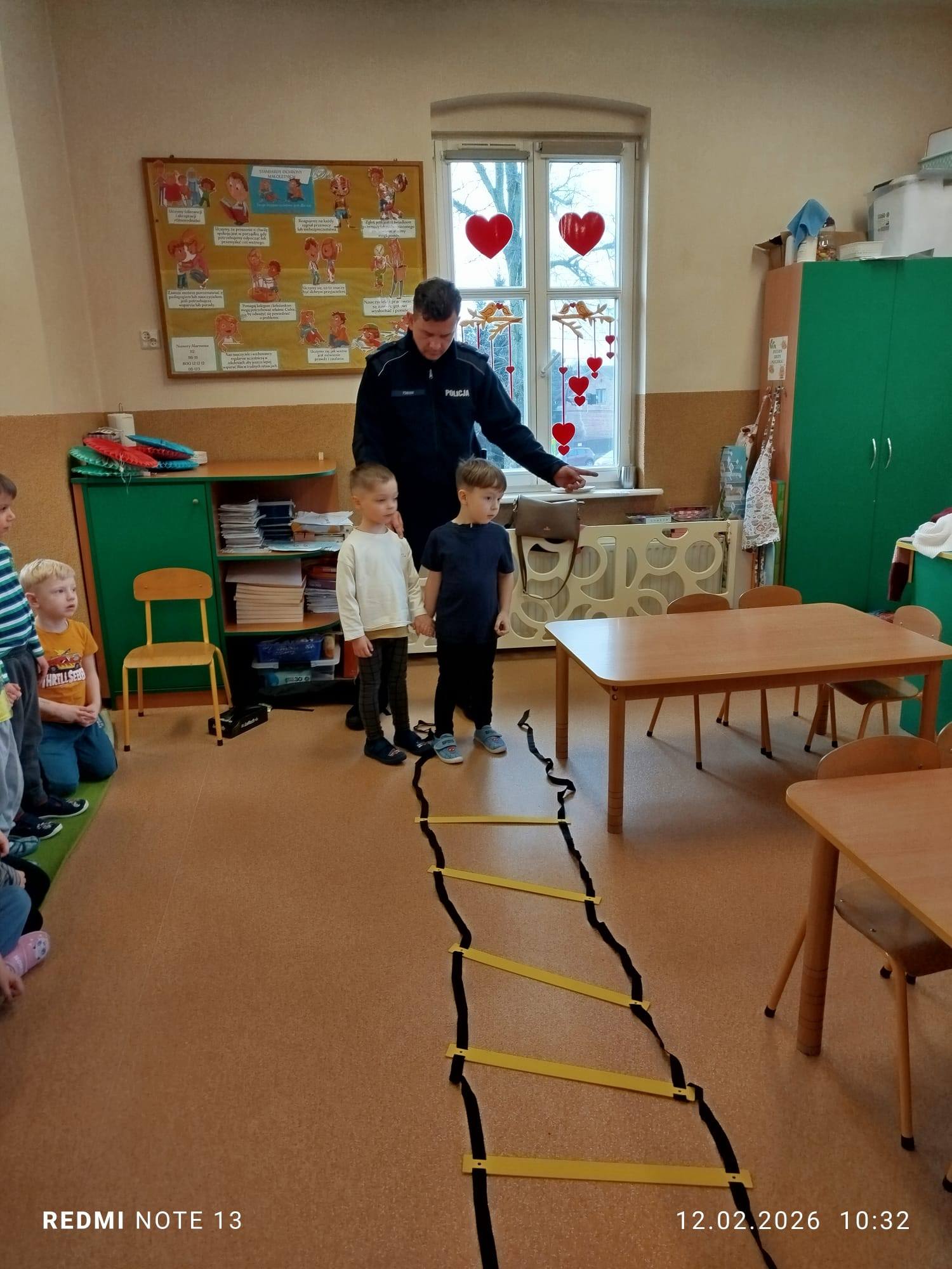 Celem wizyty było przypomnienie dzieciom najważniejszych zasad bezpieczeństwa podczas zbliżających się ferii zimowych. Przedszkolaki z dużym zainteresowaniem słuchały wskazówek dotyczących bezpiecznej zabawy na śniegu i lodzie, poruszania się po drodze, kontaktów z nieznajomymi oraz właściwego zachowania w sytuacjach zagrożenia.