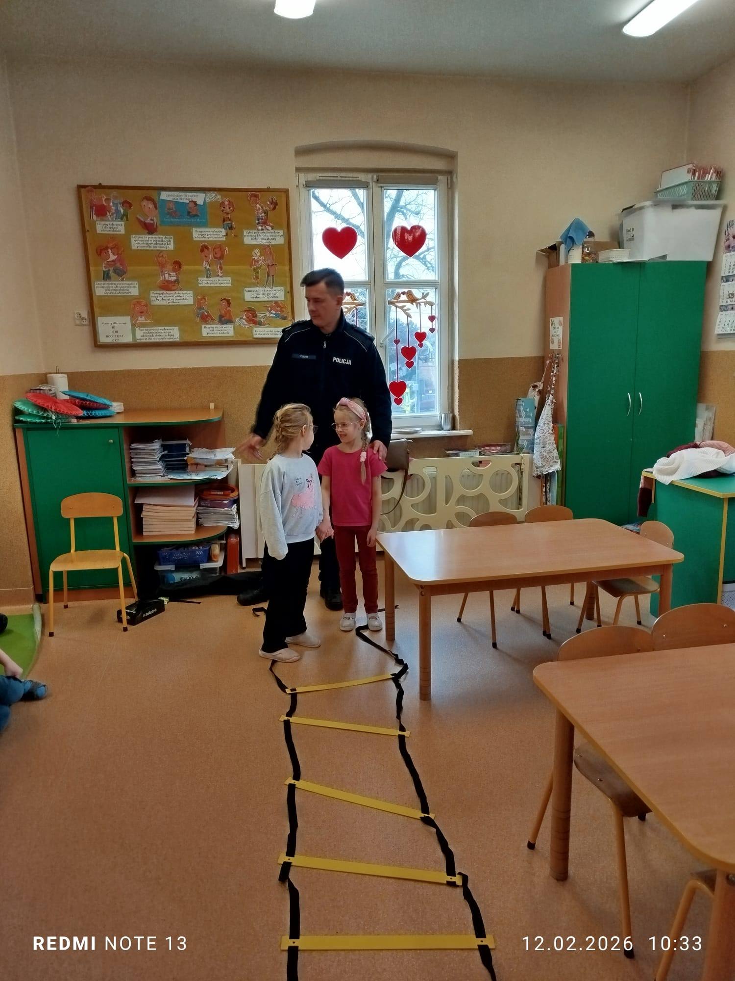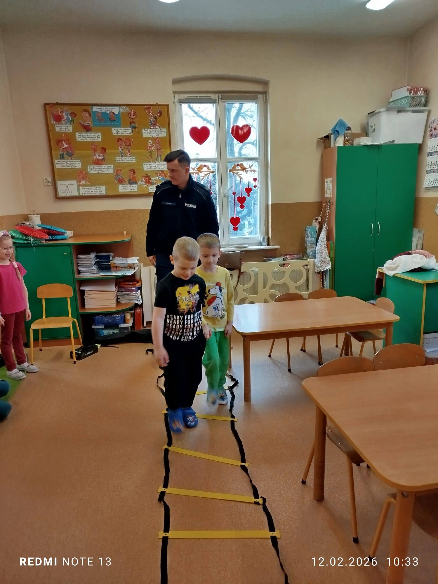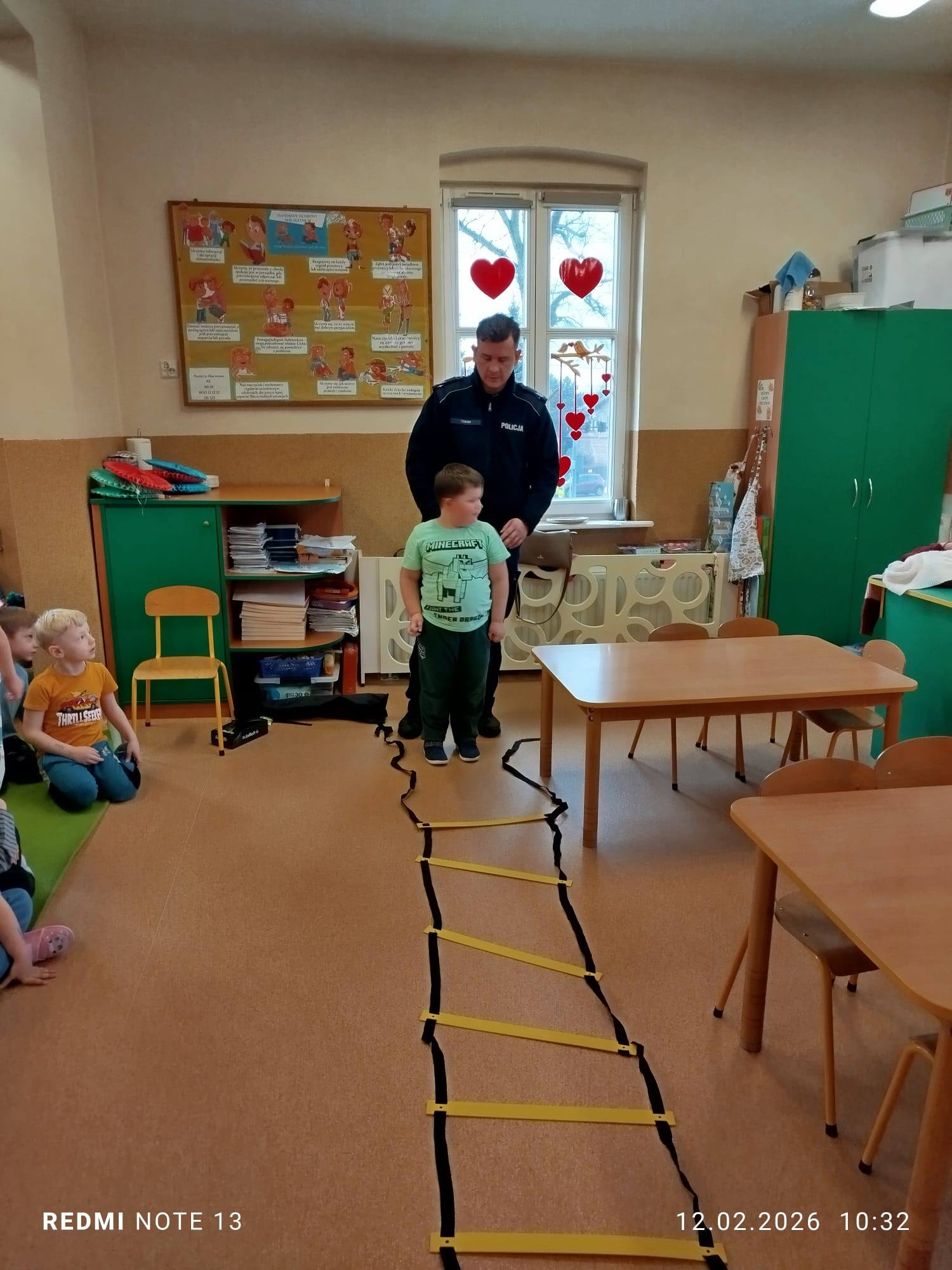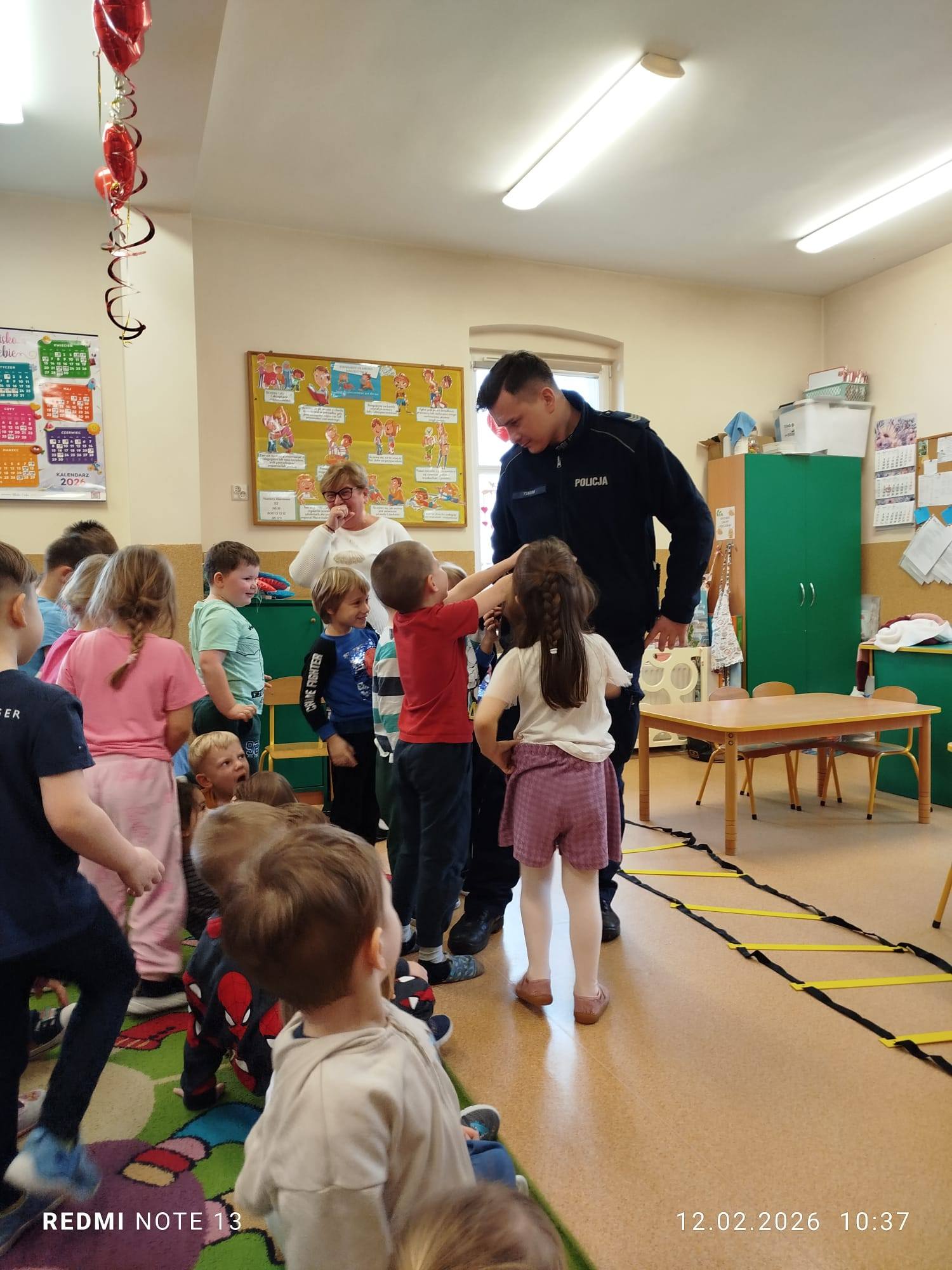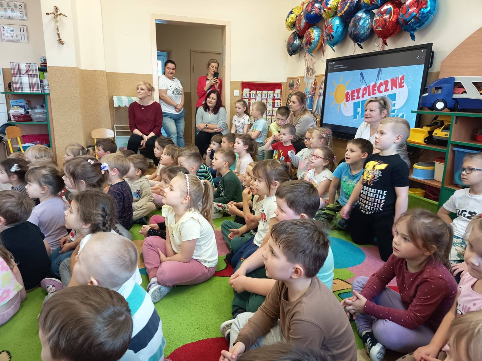 Celem wizyty było przypomnienie dzieciom najważniejszych zasad bezpieczeństwa podczas zbliżających się ferii zimowych. Przedszkolaki z dużym zainteresowaniem słuchały wskazówek dotyczących bezpiecznej zabawy na śniegu i lodzie, poruszania się po drodze, kontaktów z nieznajomymi oraz właściwego zachowania w sytuacjach zagrożenia.